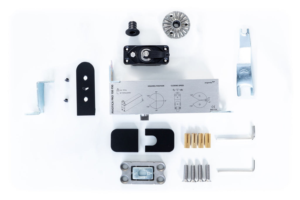 - Both floor plate and upper pivot can be adjusted (width and depth) to ensure a flush-to-wall door