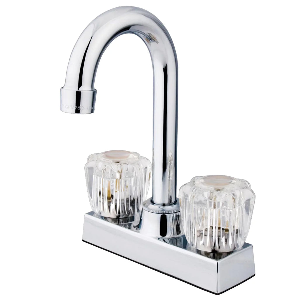 - Two-hole 4" centerset installation with a 90-degree rotation water control mechanism