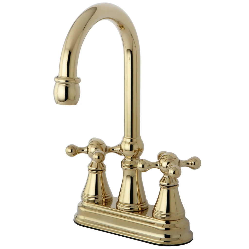 - Two-hole 4" centerset installation with a 90-degree rotation water control mechanism