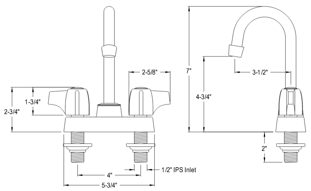 • Two-hole 4" centerset installation with a 90-degree rotation water control mechanism