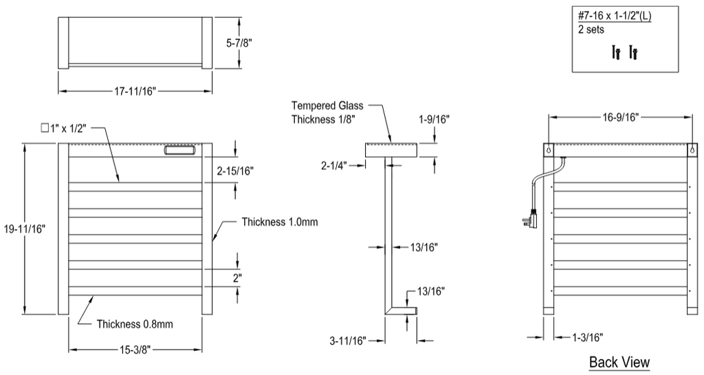 - Overall size: (L)17-11/16" x (W)5-7/8" x (H)19-11/16"