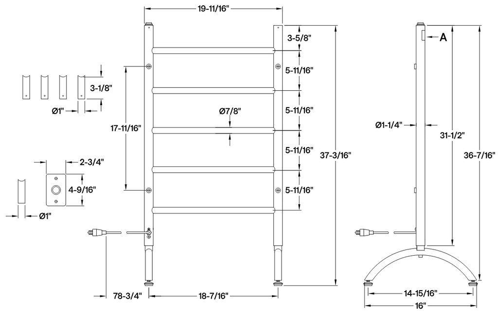 Templeton Freestanding or Wall Mount Hardwired/Plug-In Electric Towel Warmer