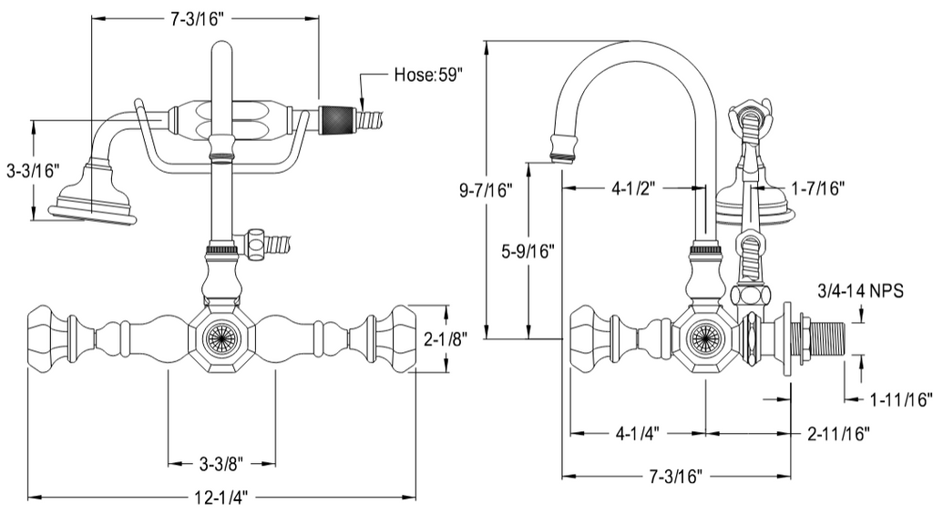 Kingston - Tub Faucets - Celebrity AE7TWCL Three-Handle 2-Hole Tub Wall Mount Clawfoot Tub Faucet with Hand Shower