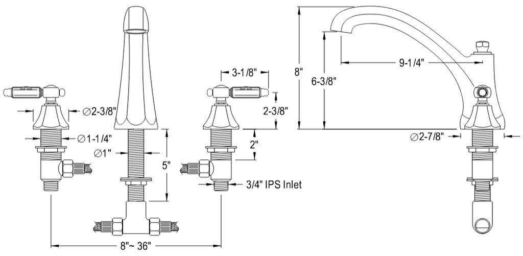 • Overall dimension: (W)8" (203.20 mm) x (D)9-1/4" (234.95 mm) x (H)8" (203.20 mm)