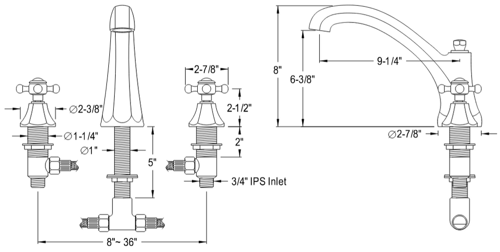 • Overall dimension: (W)8" (203.20 mm) x (D)9-1/4" (234.95 mm) x (H)8" (203.20 mm)