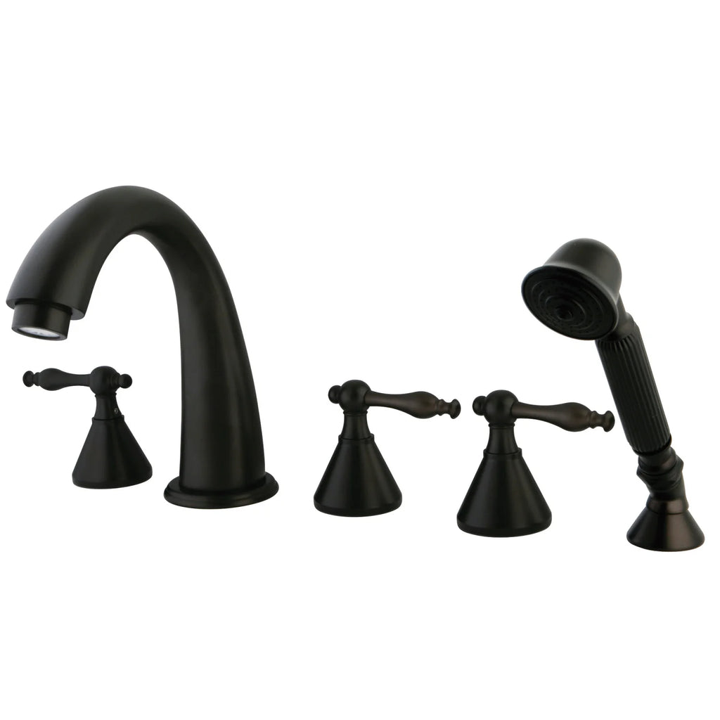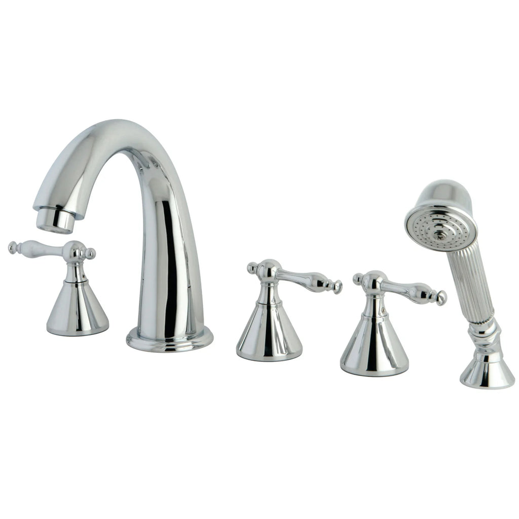 Kingston - Tub Faucets - Naples KS2365NL Three-Handle 5-Hole Deck Mount Roman Tub Faucet with Hand Shower