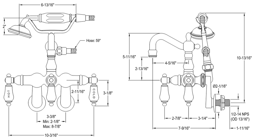 - 2-1/8"-8-7/8" adjustable wall mount swing arms