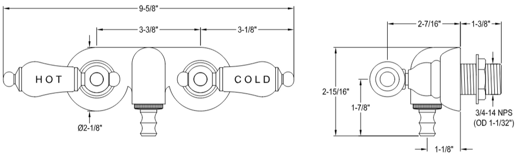 Kingston - Tub Faucets - Vintage CC43T Two-Handle 2-Hole Tub Wall Mount Clawfoot Tub Faucet