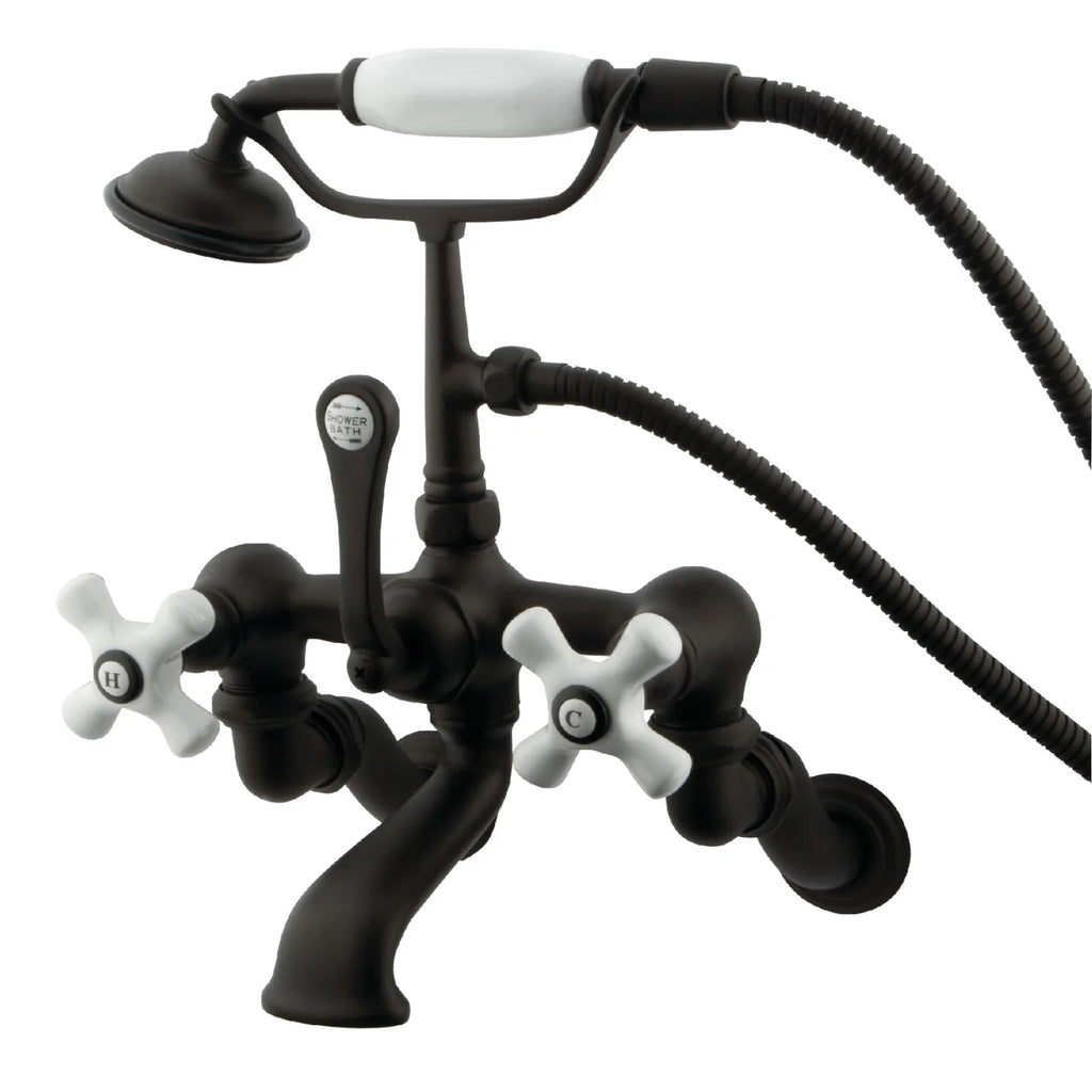 Kingston - Tub Faucets - Vintage CC465T Three-Handle 2-Hole Tub Wall Mount Clawfoot Tub Faucet with Hand Shower