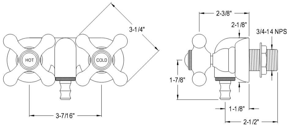 Kingston - Tub Faucets - Vintage CC48T Two-Handle 2-Hole Tub Wall Mount Clawfoot Tub Faucet