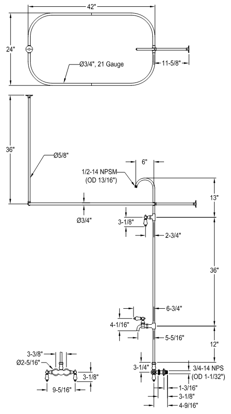 - 3-3/8" tub wall mount installation