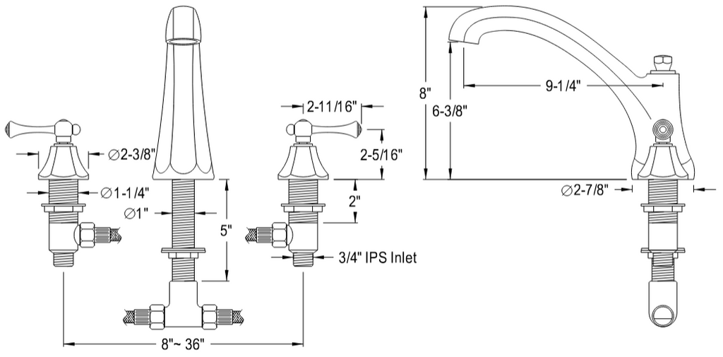 • Overall dimension: (W)8" (203.20 mm) x (D)9-1/4" (234.95 mm) x (H)8" (203.20 mm)