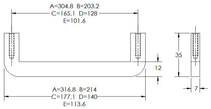 - Section: 12 x 7 mm (0.47 x 0.28”)