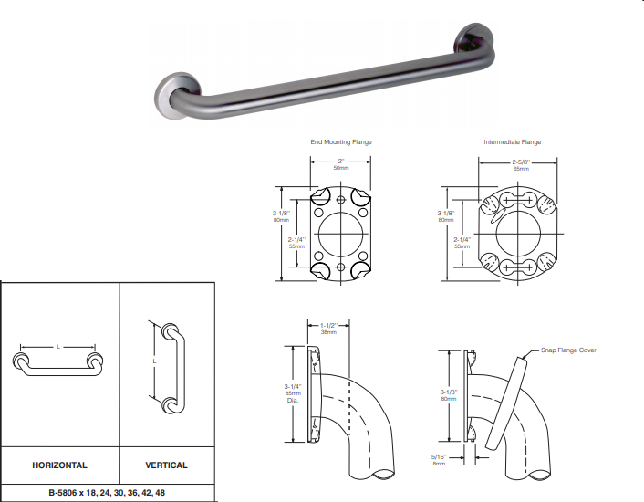 Width: 18" 24" 30" 36" 42" 48" Available (center to center)